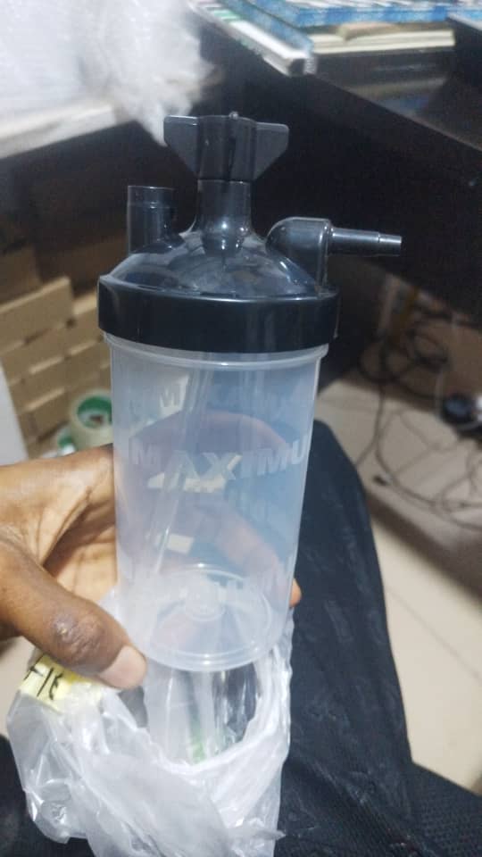 In StockA humidifier bottle is a medical-grade accessory used with oxygen concentrators to prevent nasal and throat dryness, ensuring patient comfort during oxygen therapy. It bubbles dry oxygen through water to add moisture before it reaches the nasal cannula. Typically holding 250ml–800ml, these bottles are often made of durable, autoclavable polycarbonate.