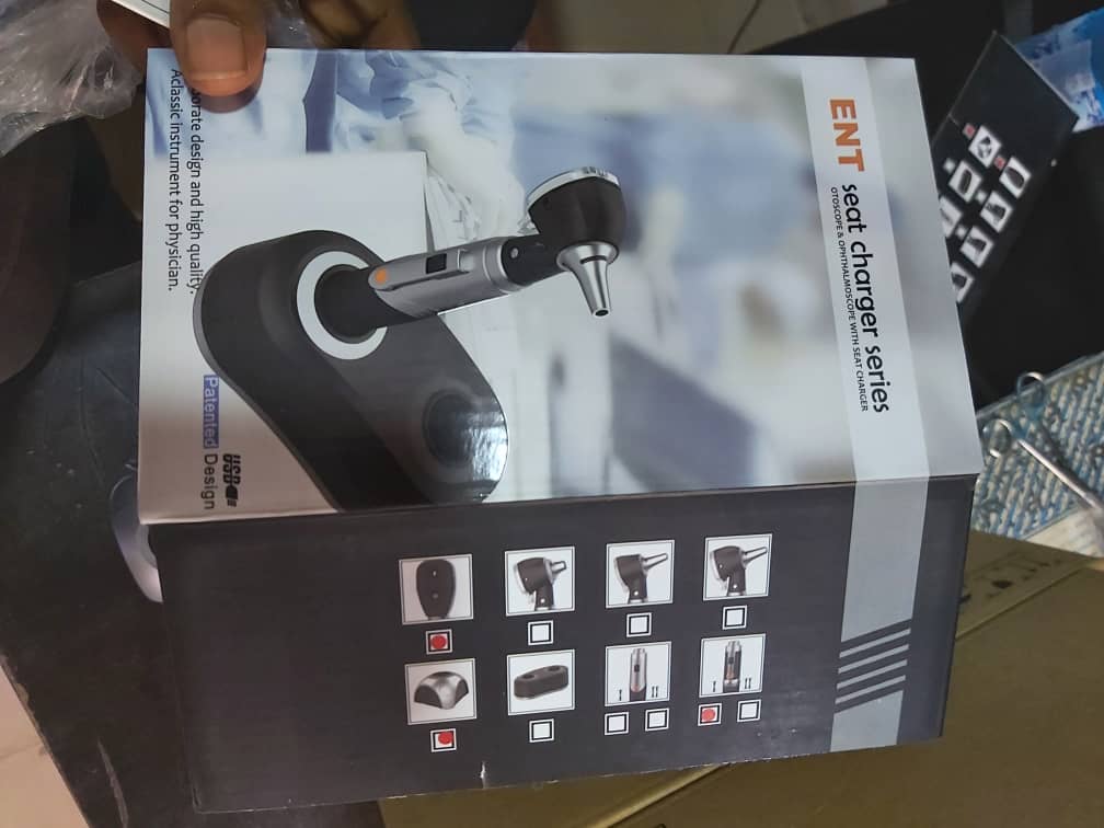 In StockAn otoscope is a handheld medical device used to examine the ear canal and eardrum (tympanic membrane) for infections, earwax buildup, and other ailments. It works by providing a magnified, illuminated view of the auditory canal. Common in clinical exams, these devices can be specialized, including [digital models with cameras] or [pneumatic attachments to test membrane mobility].